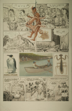 Nature/Nurture and other old/odd debates is a painting series/comic book of 12 paintings/pages. Each piece is 30″ x 19 1/4″ . Mediums used are; ink, shellac, pencil, acrylic, egg tempera, water miscible oil, on a traditional glue/chalk gesso ground on panel. The paintings were created from 2018 to 2020.